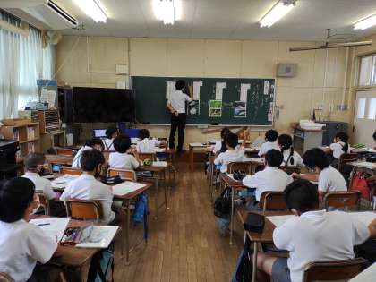 9月14日、4年2組で校内研究授業を行いました。今年度は国語科に焦点を当てて研究を進めています。教科書の『ふしぎ』という金子みすゞさんの詩を教材として場面の情景について想像をひろげながら詩を音読することができるなどの力を身につけることができるように授業を展開しました。