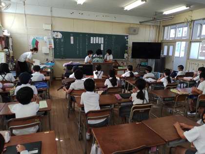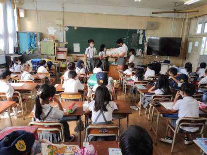 読書タイムの時間を利用して、図書委員会の児童が1・2年生に読み聞かせを行いました。とても上手に図書委員会の児童は低学年の児童に読み聞かせができていました。こういう活動をきっかけに豊里南小学校の全児童が本を読むことに興味をもってほしいものです。