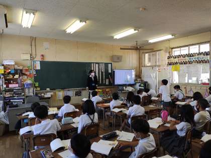 4年1組で教育実習生が授業を行いました。「一つの花」という作品の国語の授業で、活発な意見が多くでていました。