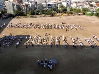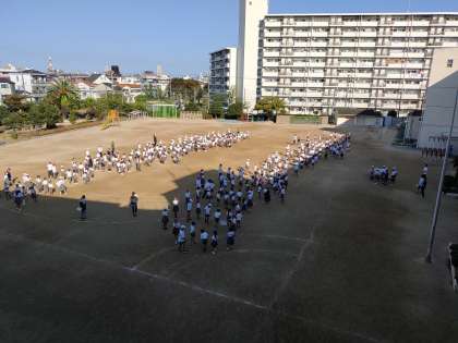 10月7日、今年度初めて運動場で児童集会を行いました。