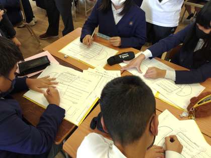 10月26日、5年2組で研究授業を行いました。宮沢賢治の「注文の多い料理店」を読んで物語の面白さを解説しようをテーマに学習しました。今日は思考ツールの一つ「フィッシュボーン図」を活用してみんなで物語の魅力を伝えました。放課後には、研究討議を行いました。