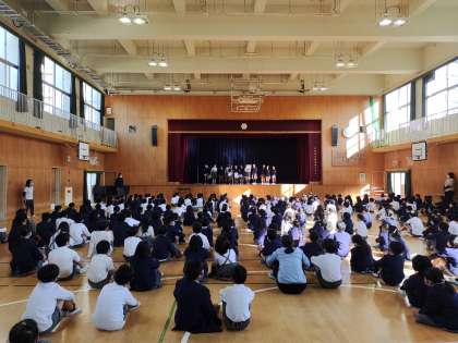 10月28日、児童集会で美化・栽培委員会より、美化について発表がありました。校内の清掃についてクイズ形式で行いました。今日の発表を参考にして、みんなで学校をさらに美しくしていきます。