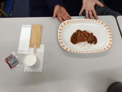 鳥羽水族館で昼食です。3種類のカレーのおかわり自由のメニューです。