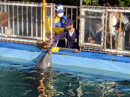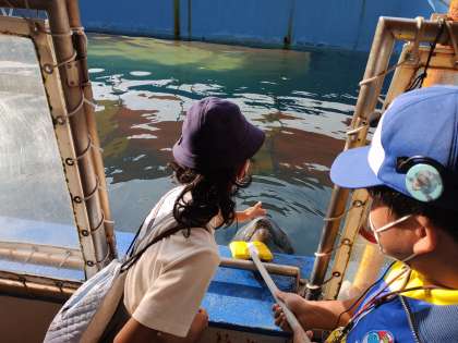 イルカ島に着きました。イルカに直接さわったり、アシカのショーを見ました。これから宿舎へ向かいます。