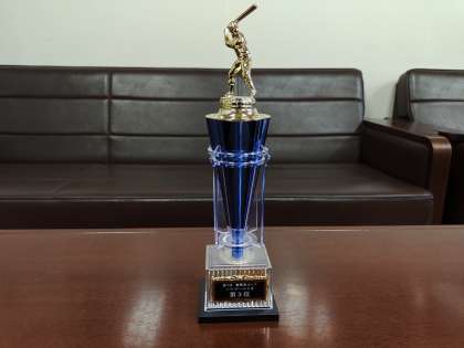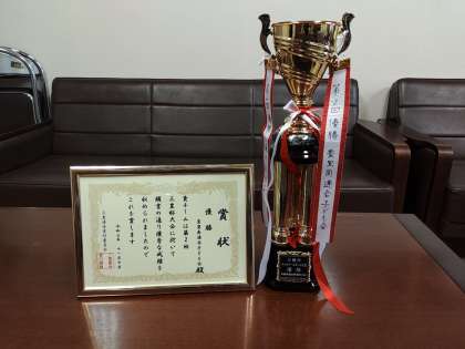 写真はソフトとキックベースのトロフィー・賞状です。