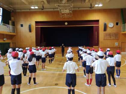 「夢授業」は、トップアスリートの方が来校し講話や実技の指導をしていただく大阪市の取り組みです。