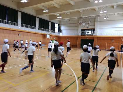 力を最大限発揮するには大きな筋肉である腹直筋・広背筋という起立筋を活用することが大切だというお話を、子どもたちは興味津々に聞いていました。正しい走り方について実技指導をして頂いた後、ゲーム形式でたくさん身体を動かしました。