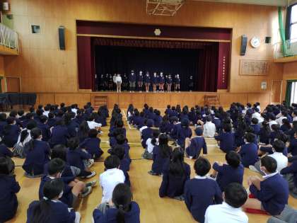 11月18日、朝の児童集会で後期代表委員会の自己紹介がありました。その後、各代表が学校や学級をよくしていくための抱負を語ってくれました。堂々としてとても立派な発表でした。