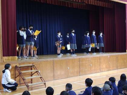 11月25日、児童集会で図書委員会が読書強調週間の結果をクイズ形式で発表しました。その発表の中でこの期間(4週間)に子どもたちが読んだ本の冊数が発表されました。なんと2500冊を超えました。この5年間で2500冊に達したのは初めてでした。素晴らしい!