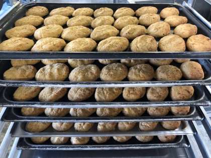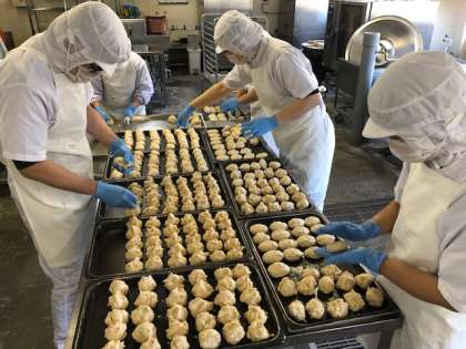 でした。とうふハンバーグは、ツナ、たまねぎ、とうふと調味料を混ぜ合わせ、調理員さんが一つ一つ手作りしてくれています。焼き物機で焼き、ケチャップをかけていただきました。
