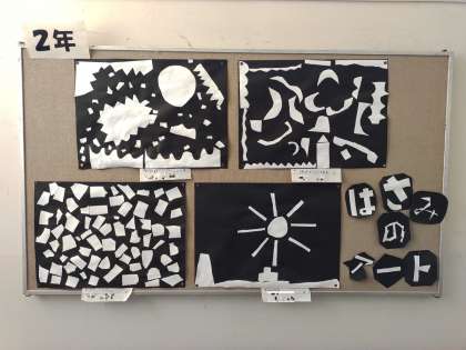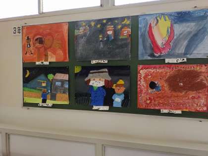 12月7日に引き続き、3年から6年は経年調査を実施しました。どの児童も真剣に受験していたので邪魔になってはいけないと思い写真撮影は控えました。そこで、今日は各学年で掲示されている作品を紹介します。