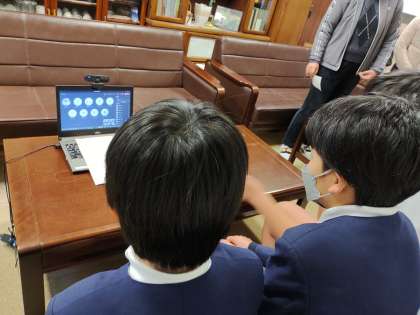 2月7日、今日もteamsを使って児童朝会を行いました。
