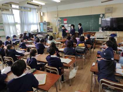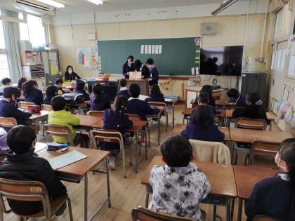 2月8日、朝の読書タイムに図書委員会による読み聞かせを行いました。図書委員会のメンバーが楽しい絵本を選んでくれました。今日は1年生と2年生でした。