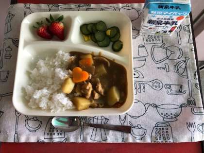 でした。新食品の「鶏レバー(ペースト)」を使用したカレーライスが初めて登場しました。レバーは、少しくせのある食べものですが、すりつぶしたペースト状のものを使い、香りのよい野菜のしょうが、にんにく、セロリで、食べやすくしています。