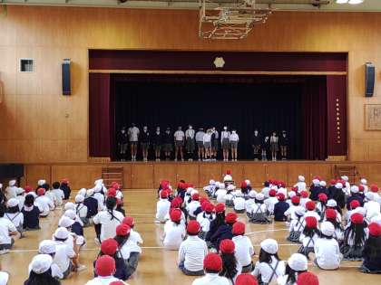 5月12日、児童集会で前期代表委員がみんなの前で、抱負を発表しました。代表委員中心にみんなでよりよい学校にしていきましょう。