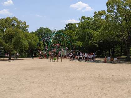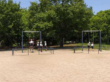 昼食後、遊具のある広場で遊びました。1年生と2年生が楽しく遊ぶことができた遠足でした。