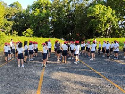 お早うございます。6時に起床し、6時半から朝の集いを行いました。しっかりと昨晩は早く寝ることかでき、みんな元気に活動を始めています。