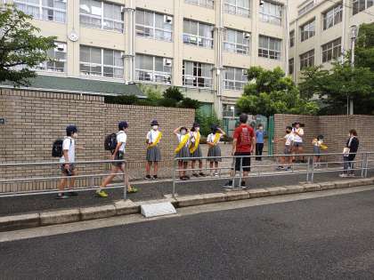 夏休みまで、あと学校へ来る日は今日を含めて3日になりました。今日も朝から代表委員会のメンバーが元気にあいさつ運動をしています。