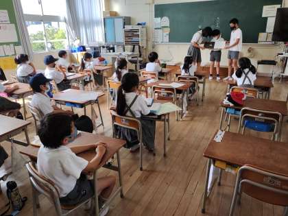 9月6日、朝の読書の時間を利用して図書委員会による低学年への読み聞かせを行いました。聞き手はしっかりと話をきくことができています。図書委員のみんなの読み聞かせも上手になってきました。