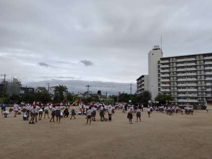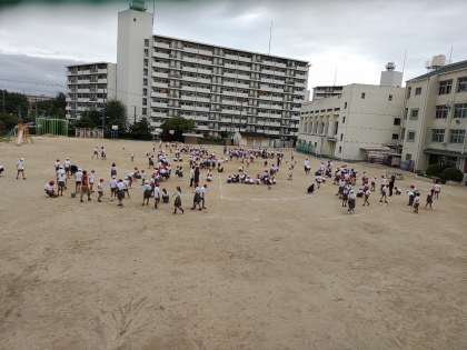 運動会での演技や協議に支障が出ないよう、9月8日の児童集会でグランドの石拾いを行いました。