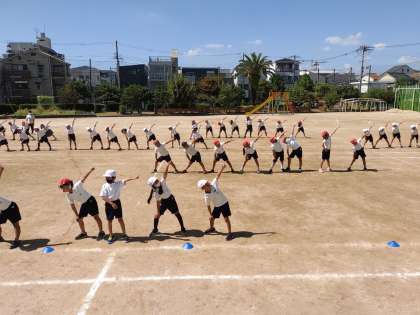 運動会まで残すところ、あと6日となりました。各学年10月1日の本番に向けて頑張って練習しています。写真は1年と2・3年の練習の様子です。