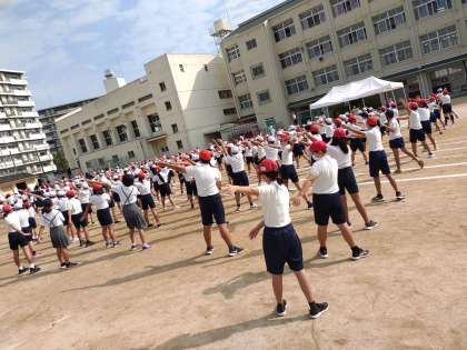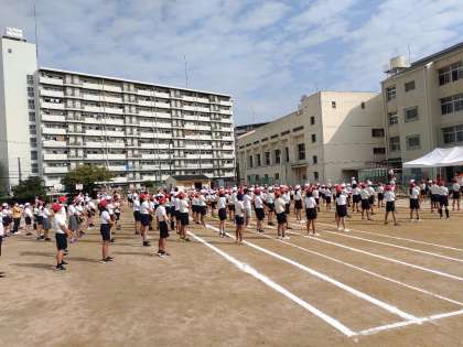 9月27日、今日は朝から運動会に向けて全体練習会を行いました。開会式・閉会式の練習を中心に、今回初めて児童全員が各自の椅子の位置や集合した時の位置の確認をし、ラジオ体操などプログラムに沿って取り組みました。