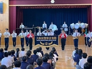 10月20日、3年生4年生が防犯教室として、大阪府警察音楽隊の音楽鑑賞と、東淀川警察署による防犯教室を行いました。