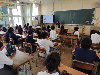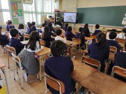 10月27日、防災学習と避難訓練を行いました。今回は1時間目に、各学級で事前に地震と津波に対しての防災学習を行いました。消防署からお借りしたDVDや NHK for school などの動画を利用し地震や津波の実際の映像を見たり、クイズ形式の画像を見たりしながら学習しました。