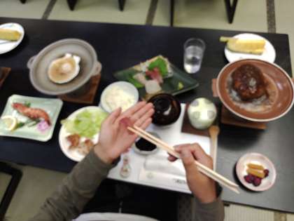 お風呂にゆっくりつかった後、掲載している、とても豪華な夕食をいただきました。ご馳走さまでした。とてもボリュームもあって、美味しかったです。