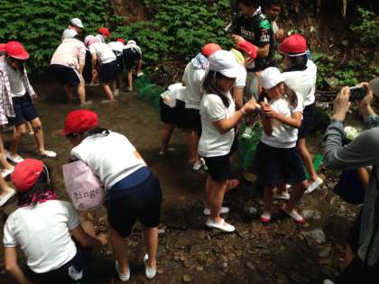 7月19日(土)〜21日(月)5年生は、兵庫県養父市の鉢伏高原へ林間学習に行きました。朝、7時に学校に集合しバスで現地に向かいました。今年から宿舎は「プラトーこのはな」です。鉢伏高原に到着して開舎式の後、お弁当を食べて近くの川で魚つかみをしました。川の水はすごく冷たかったですが、子ども達は一生懸命アマゴを追いかけていました。夜は、キャンプファイアーをしました。ダンスなどでとても盛り上がりました。晩ごはんのかも鍋もとてもおいしかったです。