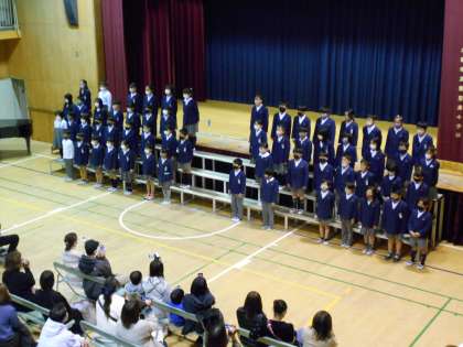 4年生は群読とボディパーカッションを披露しました。群読では「教室は間違うところだ」という詩を、ボディパーカッションでは「RPG」を発表しました。