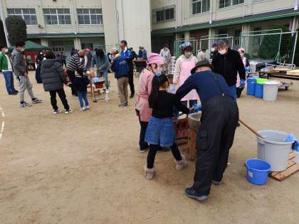 12月4日、豊里南地域活動協議会主催のもちつき大会が豊里南小学校で開催されました。