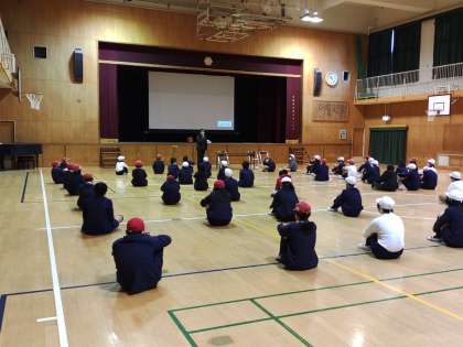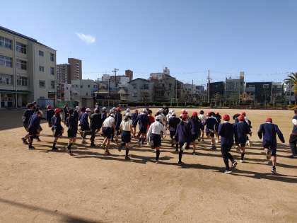 2時間目にお話を聞いた後、3時間目は運動場に出て、正しい走り方についての実技指導・ゲーム形式で教えていただきました。