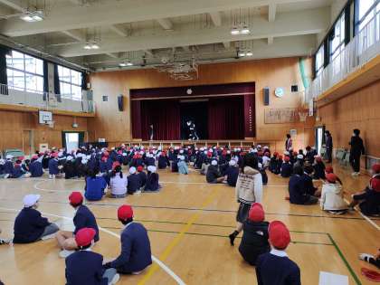 3月2日、今日の児童集会は講堂の舞台を横切るのは何でしょうというクイズを分団に分かれてみんなで楽しみました。とても難しい問題もありましたね。