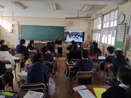 3月3日、卒業生を送る会を行いました。卒業する6年生に在校生が感謝やお祝いの気持ちを伝えました。最初の30分は各学年が事前に撮影しておいた動画を教室で鑑賞しました。