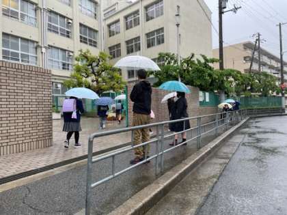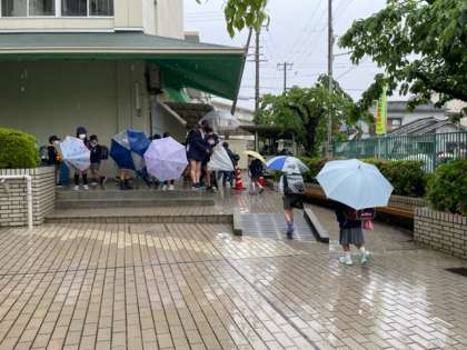 雨にも負けず、子どもたちは元気にあいさつをすることができました。
