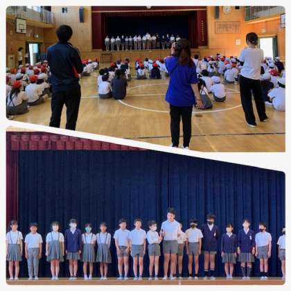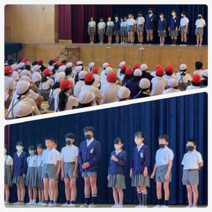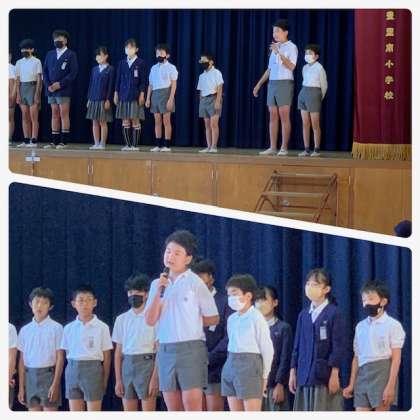 今日の児童集会は、各クラスの代表委員と委員会活動の委員長を任された児童たちの紹介です。自己紹介とこれからの活動への意気込みを一人ずつ語ってくれました。最後に児童会の会長からは、豊里南小学校を楽しくよい学校にしていきたい!という頼もしい宣言がありました。みんなで協力して学校を盛り上げていきましょうね。