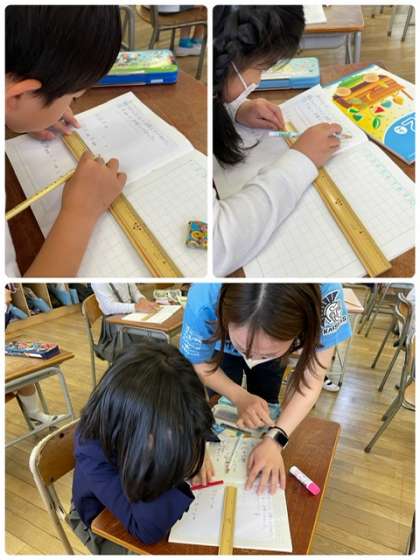 78mmは、7cm 8mmになる理由を分かりやすく説明することができ、またものさしを使い、直線をかく練習をしました。