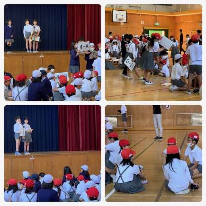 今朝の児童集会は、たてわり班でミナクルパーティーについての相談です。6年生を中心に各班で当日の出し物について話し合いました。出したいお店の希望を第一希望から第三希望まで決めました。ボーリングに魚釣り、モグラたたきやお化け屋敷などなど、どんなお店に決まるか楽しみですね。