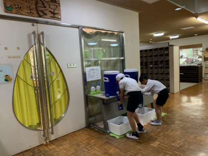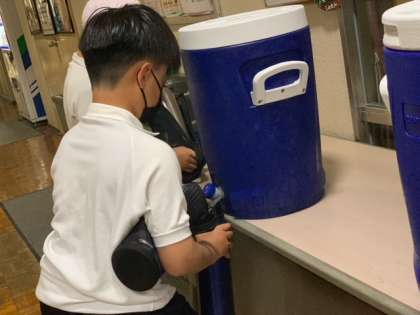朝ごはんの前に、宿舎の方が用意してくださっている今お茶を自分で水筒にいれています。