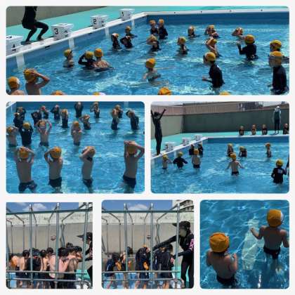 今日から1年生と2年生もプールが始まりました。初めての1年生は、シャワーだけでも大騒ぎ!「わぁー!」「きゃー!」「ぎゃー!」悲鳴のような声が響き渡ります。