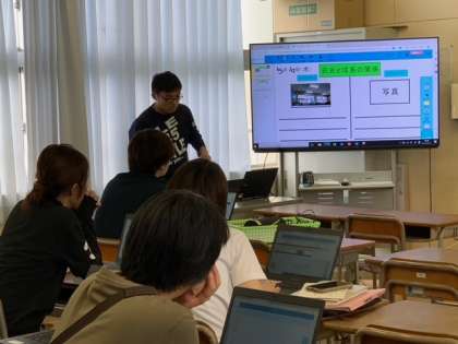 子どもたちの合意形成や、思考の整理に役立つシステムの活用について、ロイロノートの会社の方に来てもらい教えていただきました。