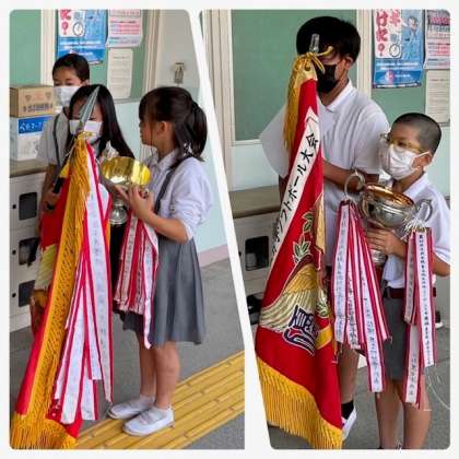 とても立派な優勝旗と、大きな優勝カップをいただいています。
