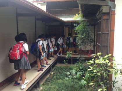 10月9日(金)4年生は、大阪市立科学館と適塾に行きました。はじめに大阪市立科学館内を見学してからプラネタリウムを見ました。それからお弁当を食べて昼から「ふしぎな偏光板」というサイエンスショーも見ました。子ども達は次々に繰り出される実験に声をあげて喜んでいました。次に適塾へ行きました。江戸時代にタイムスリップしてしまったような建物を見て、子ども達は「おばあちゃんの家みたいやなあ。」などの感想をもらしていました。天気にも恵まれ、とても楽しい遠足になりました。