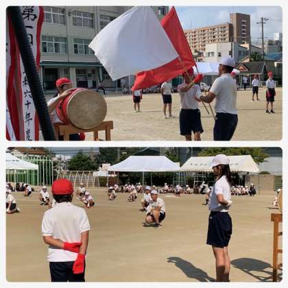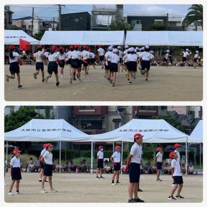 前回の練習では少し声が小さくノリが悪く、少し残念なことになっていましたが、今日の全体練習では、応援団以外の子どもたちもしっかりと声が出ていて、見応えのある応援合戦でした。