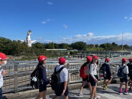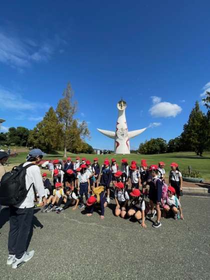 万博公園に到着しました。とても良いお天気で爽やかで、絶好の遠足日和です。