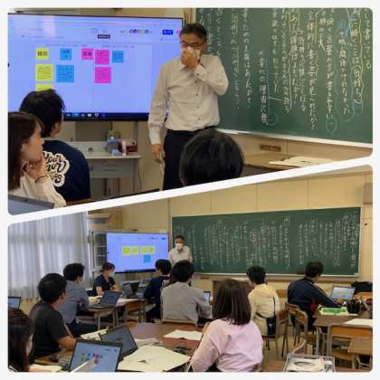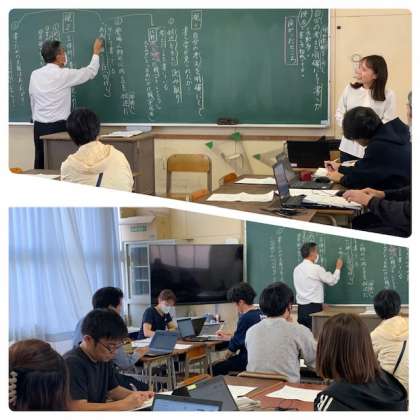 今年も本校では国語科の研究に取り組んでいます。今年は「書く力」に着目し、?主体的に書くこと、?自分の考えを明確にして書くこと、の二つに重点をおいて授業実践を進めています。研究授業の後には、必ず全員で討議を行い、教育センターの高砂先生にご指導いただいています。