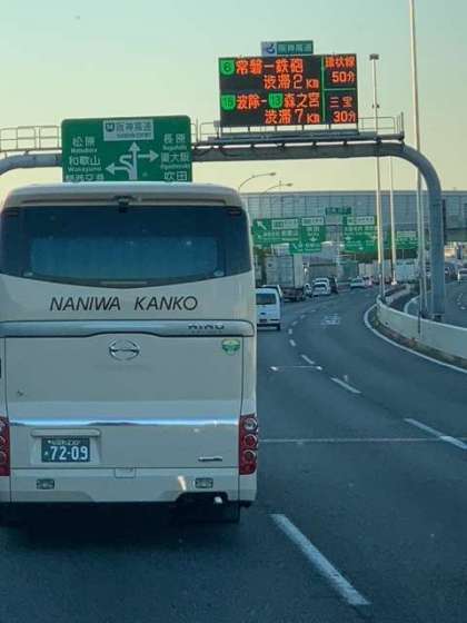 工事で渋滞しています。学校到着は5時30分頃になりそうです。大東鶴見で高速を降りた辺りで、また連絡します。