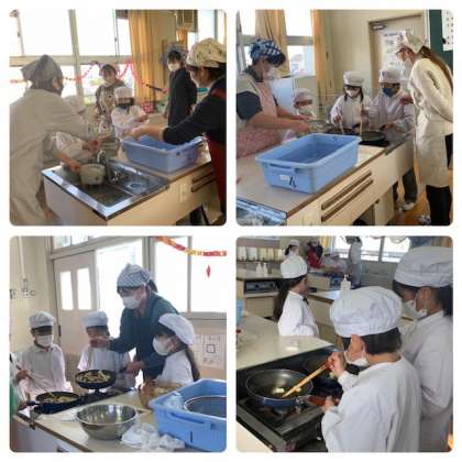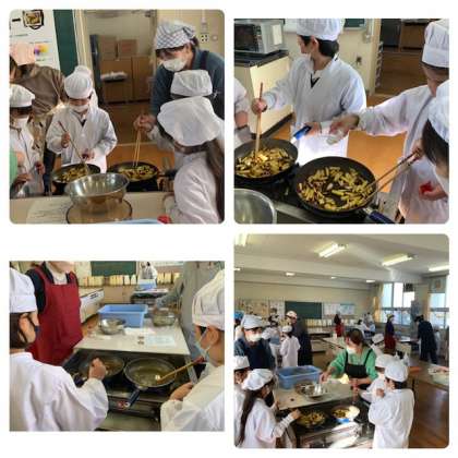 包丁や火を使って調理するので、保護者の皆さんにお手伝いをお願いしたところ、とてもたくさんの方にお越しいただき、感謝しています。おかげ様で安全に調理することができました。子どもたちもとても楽しそうに、それでいて包丁やフライパンを持つ目は真剣で、素敵なおいもパーティーになりましたね。