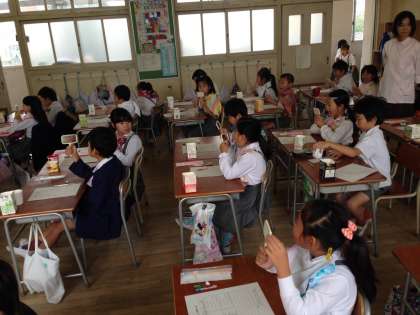 10月21日(木)2年生は歯科衛生士の方に来ていただいて歯磨き指導を行いました。歯ブラシの持ち方や動かし方などをていねいに教えていただきました。子ども達はカラーテスターで染まった歯の部分を鏡を見ながら一生懸命磨いていました。歯は一生使う大切なものです。教えていただいたことをさっそく今晩からすぐに実践してほしいと思っています。